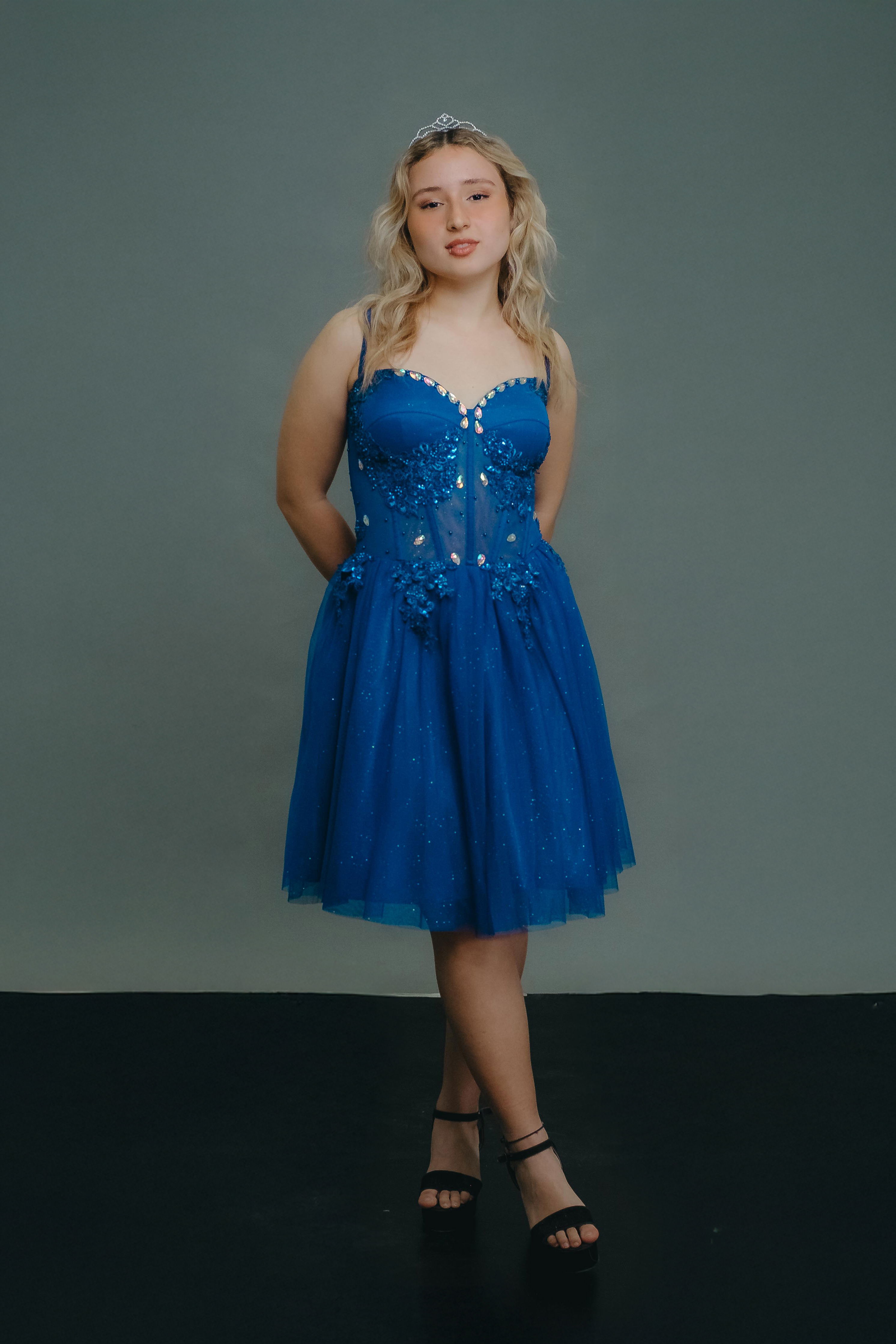 Deslumbra en tu noche especial con éste hermoso vestido de 15 años. Con corset bordado con pedreria brillante y una falda amplia de tul en capas, sin dejar pasar que es un modelo de dos piezas el cual tiene un faldon desmontable quedando asi un vestido corto, mientras que el ajuste en la espalda con cintas y cierre invisible asegura comodidad y ajuste perfecto.