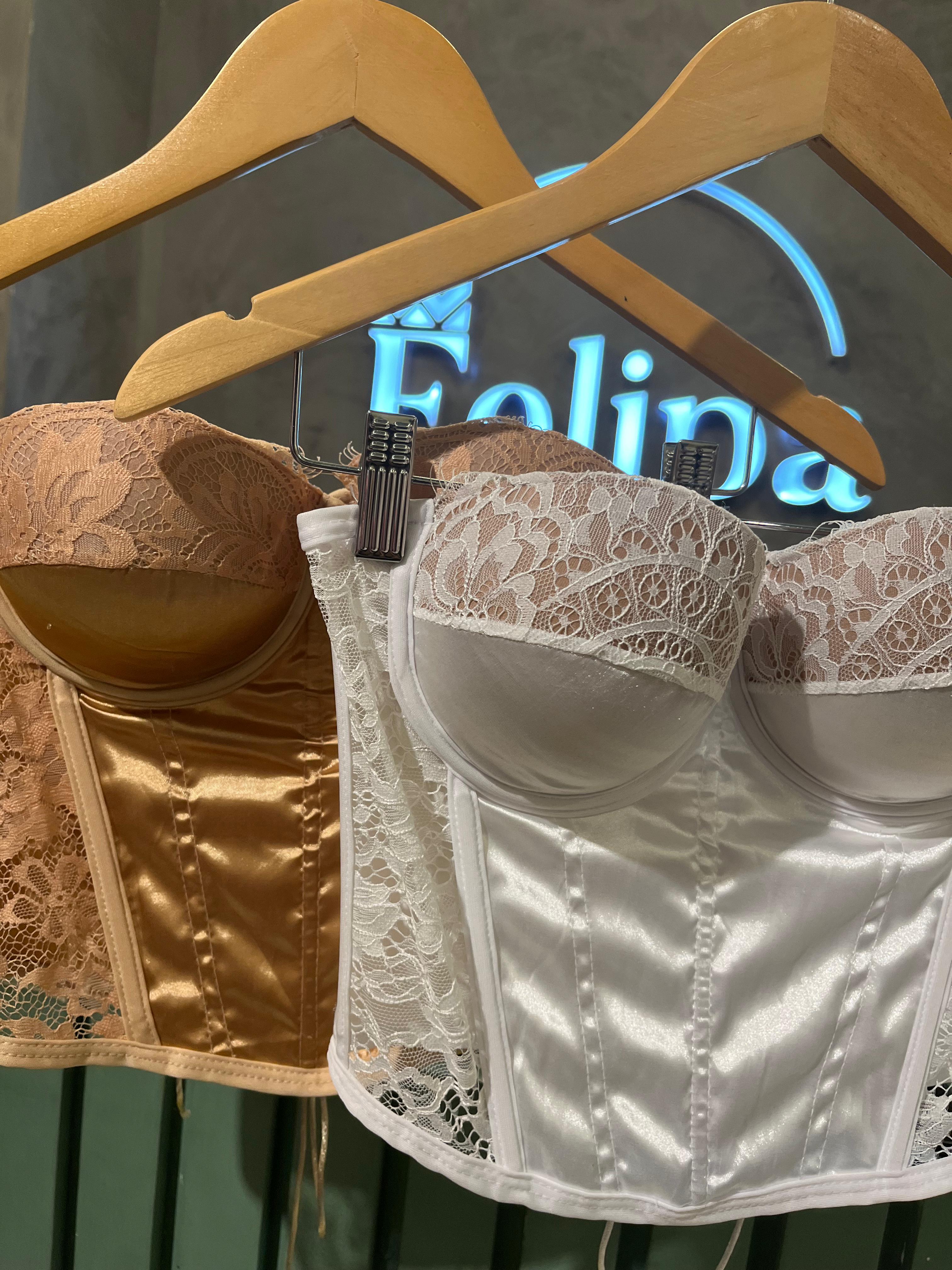 Dale a tu outfit un toque romántico, sensual y elegante con este corset blanco satinado. Su diseño combina estructura con delicados detalles de encaje floral en copas y laterales, logrando una prenda femenina y muy favorecedora.